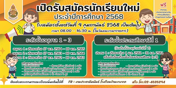 ประกาศเปิดรับสมัครนักเรียนใหม่ ประจำปีการศึกษา 2568