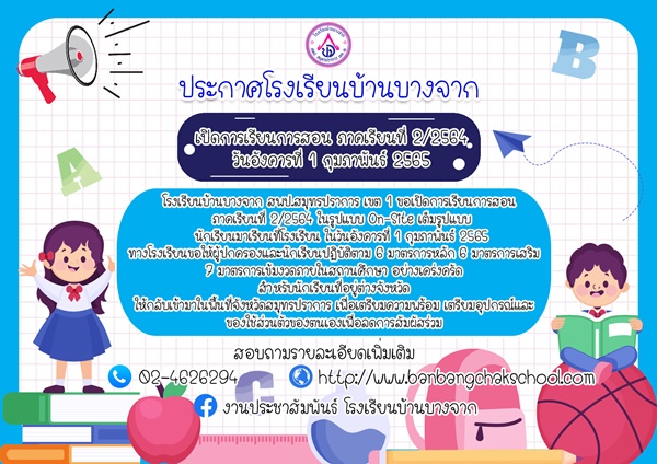 ประกาศโรงเรียนบ้านบางจาก เรื่อง เปิดการเรียนการสอน ภาคเรียนที่ 2/2564