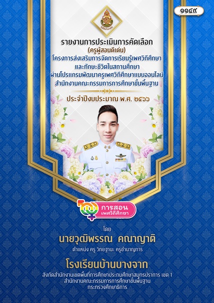 (ครูผู้สอนดีเด่น) โครงการส่งเสริมการจัดการเรียนรู้เพศวิถีศึกษาและทักษะชีวิตในสถานศึกษา ผ่านโปรแกรมพัฒนาครูเพศวิถีศึกษาแบบออนไลน์ สำนักงานคณะกรรมการการศึกษาขั้นพื้นฐาน ประจำปีงบประมาณ พ.ศ. 2566 |